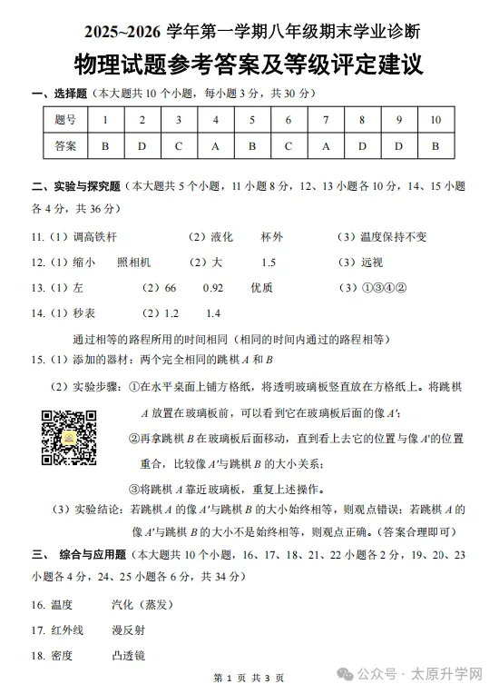 初二物理答案