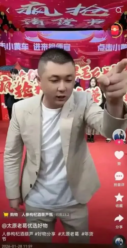 1月28日上午,记者注意到,“太原老葛”主号粉丝高达9900.3万,头像为本人侧面肖像配以“太原老葛”四个字,账号名称为“老葛29号超级年货盛宴”。