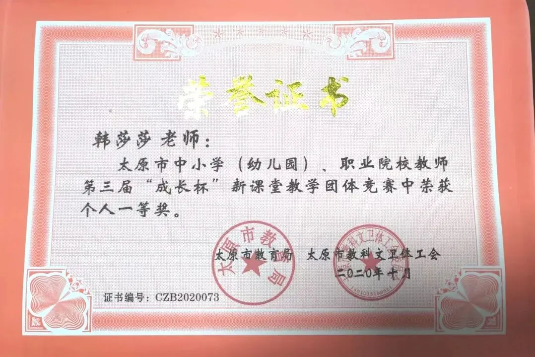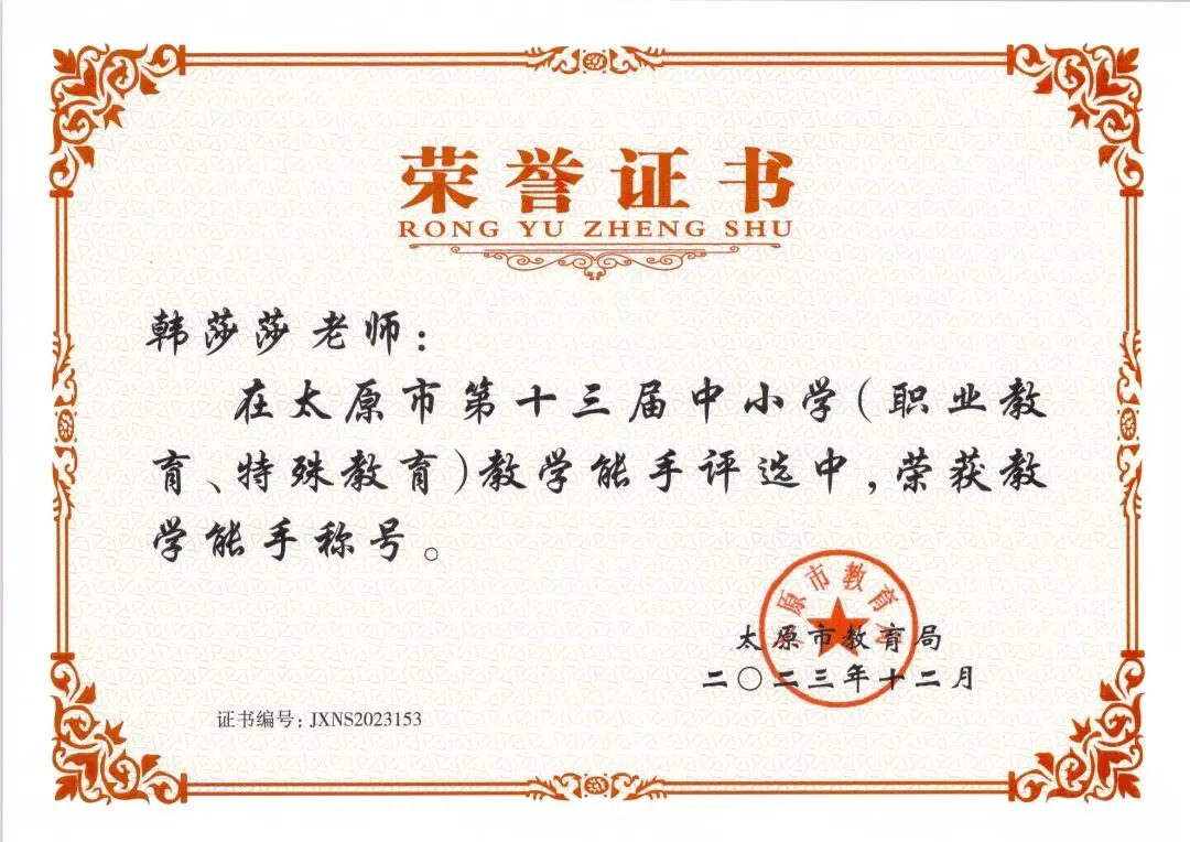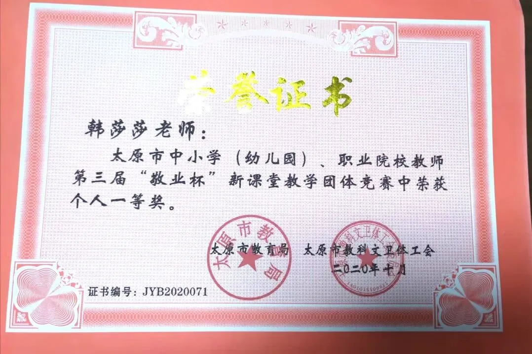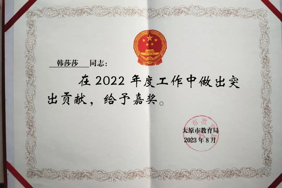 韩老师深耕初中地理教育一线十余载,作为学科骨干教师,教学功底扎实。深耕课堂与教研,荣获太原市教学能手及教学竞赛大奖。身为学科带头人,她秉持传帮带理念,助力多名青年教师快速成长,在校内外教学基本功竞赛中屡获佳绩。她师德高尚、因材施教,深受学生喜爱与家长信赖,获评优秀教师、突出贡献等荣誉,为学校学科建设与教师队伍发展做出重要贡献!