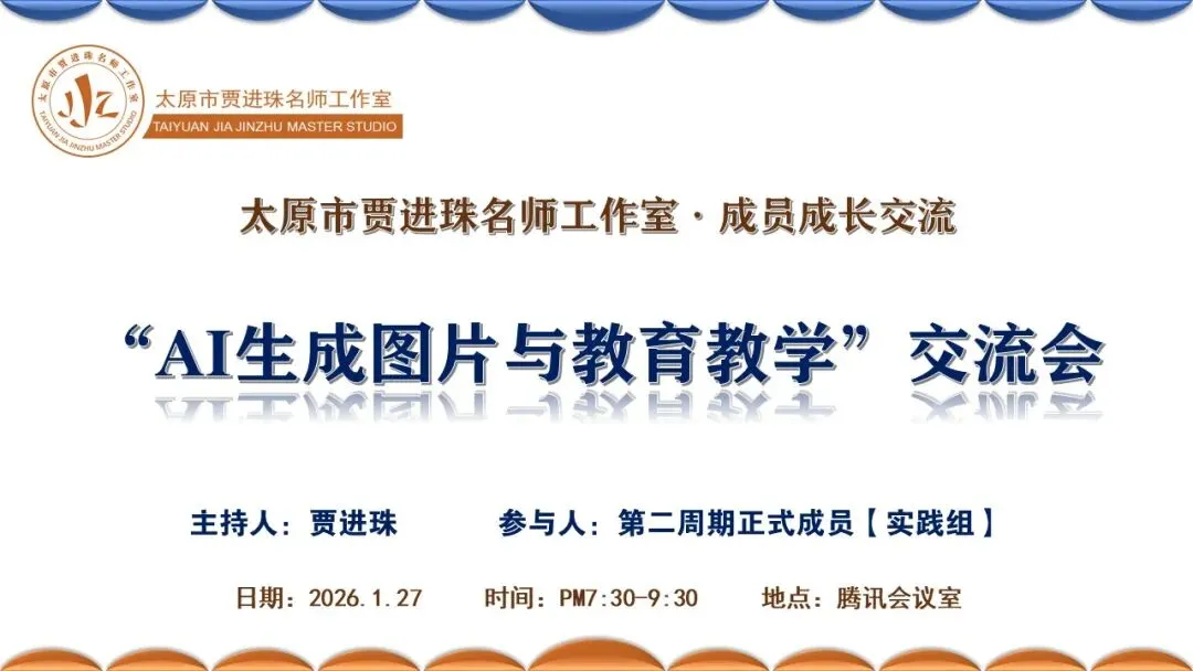 近日,太原市贾进珠名师工作室围绕“AI生成图片在教育教学中的应用”主题,组织开展了一场内容丰富、实践性强的线上交流活动。工作室主持人、导师及来自中小学、幼儿园多学段多学科的近30位正式成员齐聚云端,共同探索人工智能技术与教育教学的深度融合路径。