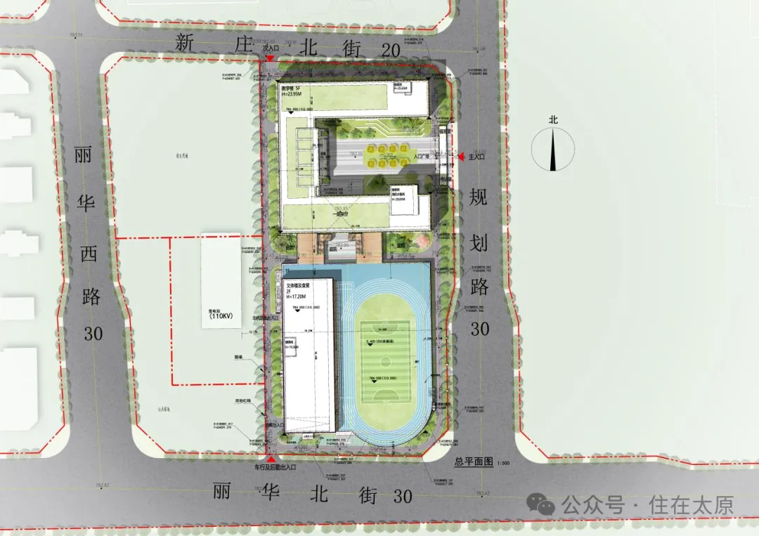 太原市第五中学校丽华校区建设地点位于九院沙河快速路以南,新庄北街以北,丽华西街以东,规划路以西。