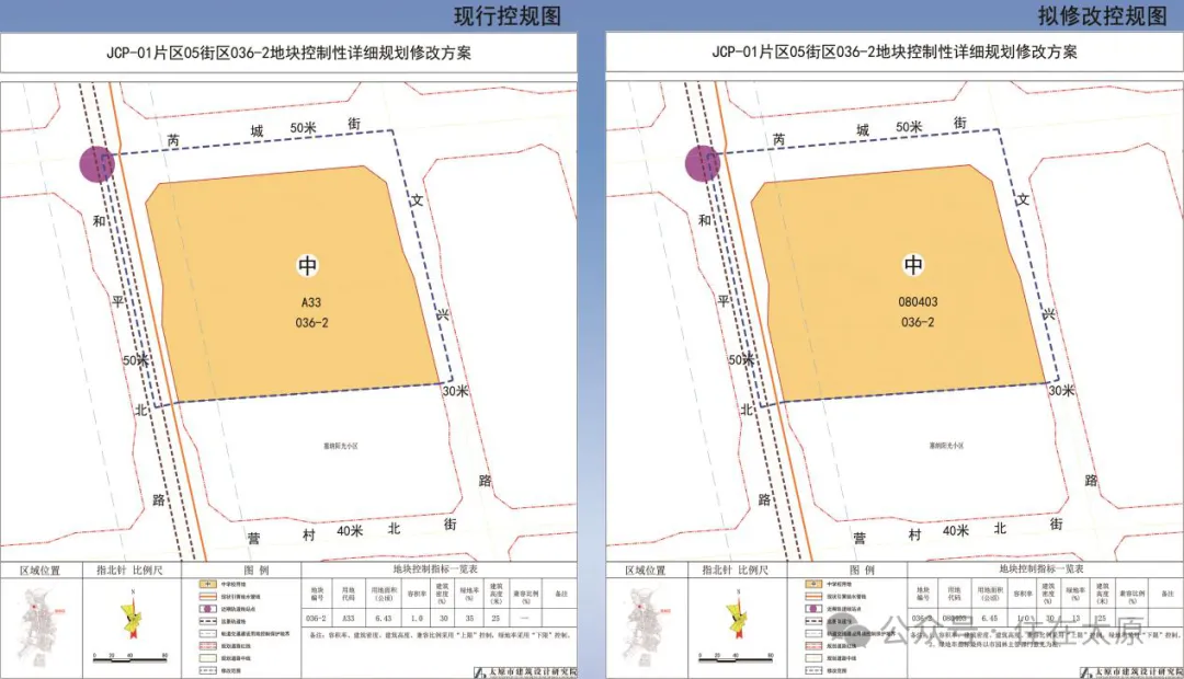 JCP-01片区05街区036-2地块修改动因为推动太原市外国语学校芮城校区项目落地。