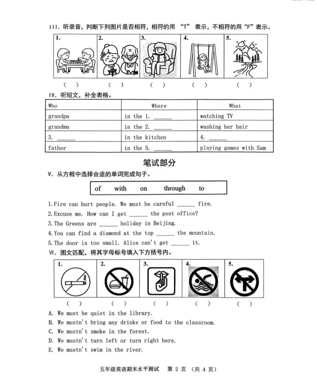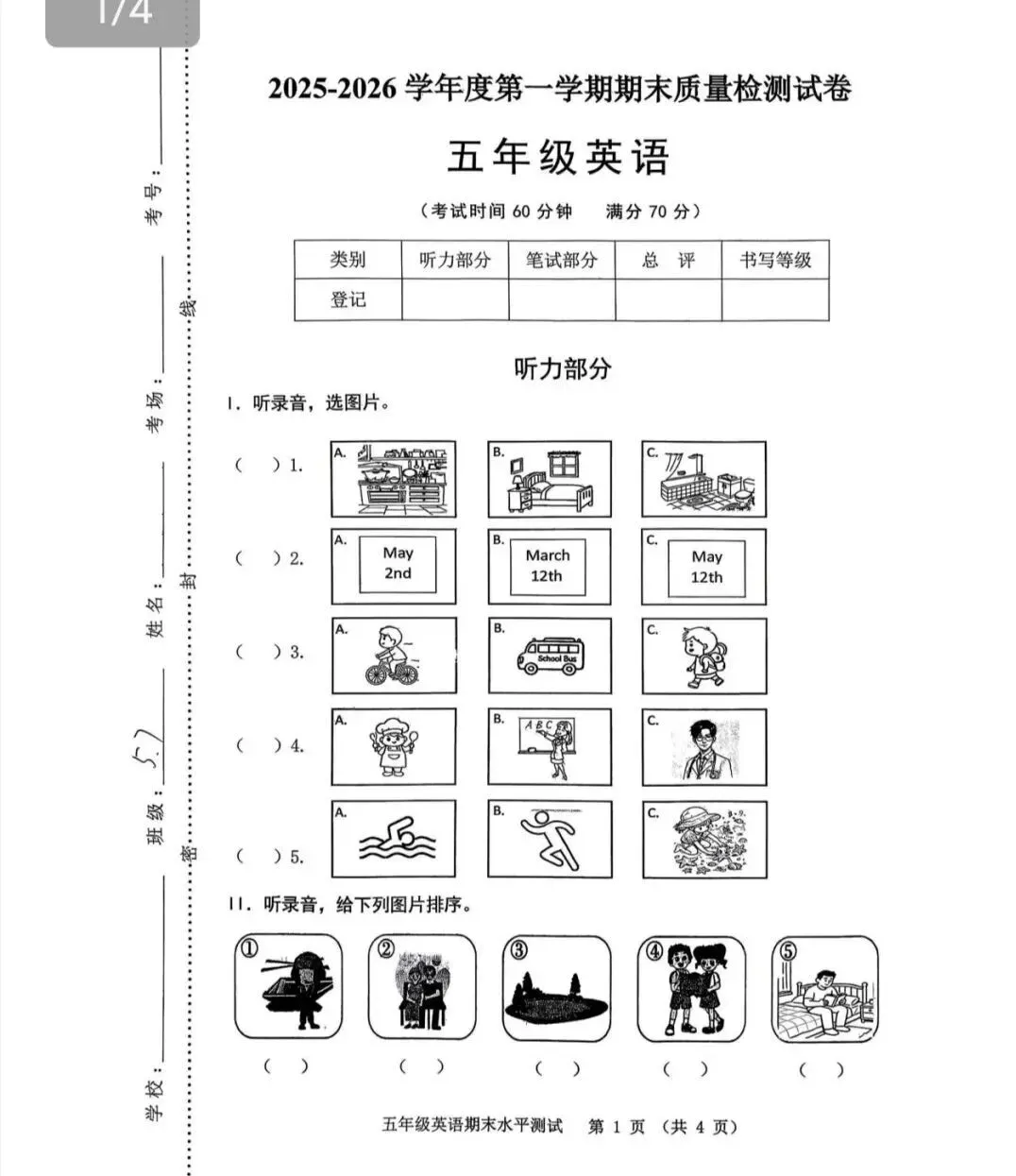 2025-2026五年级第一学期英语期末考试