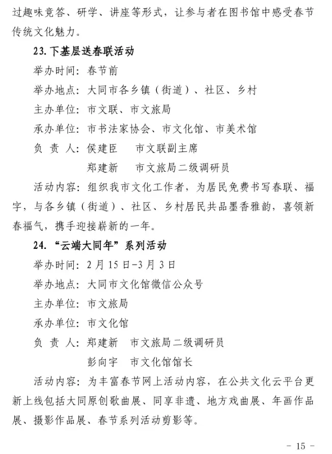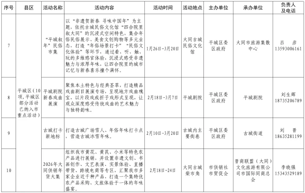 大同2026春节系列活动 时间表来啦!