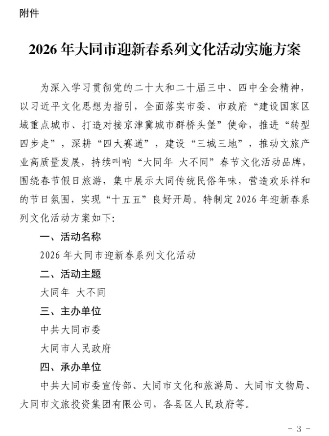 >大同2026春节系列活动 时间表来啦!
