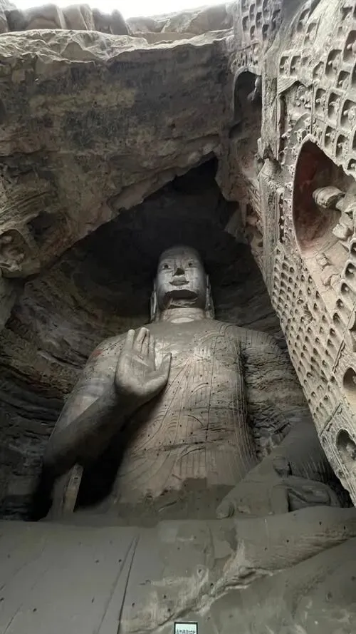 在云冈石窟待了大半天,出来的时候腿都软了。景区门口有一排长椅,我一屁股坐下,旁边已经坐着个老大爷,正闭着眼晒太阳。