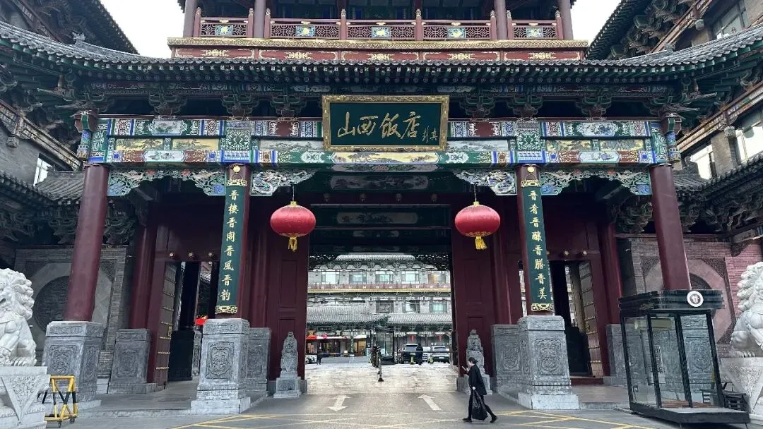从纯阳宫往南步行不过百米,一座气势恢宏的仿明清牌坊式建筑赫然入目——这便是太原餐饮文化的地标之一山西饭店。启功先生题写的“山西饭店”四个大字与门侧的对联“晋肴晋酿晋膳晋美,晋楼晋阁晋风晋韵”,已默默宣告了山西饮食文化的博大精深。
