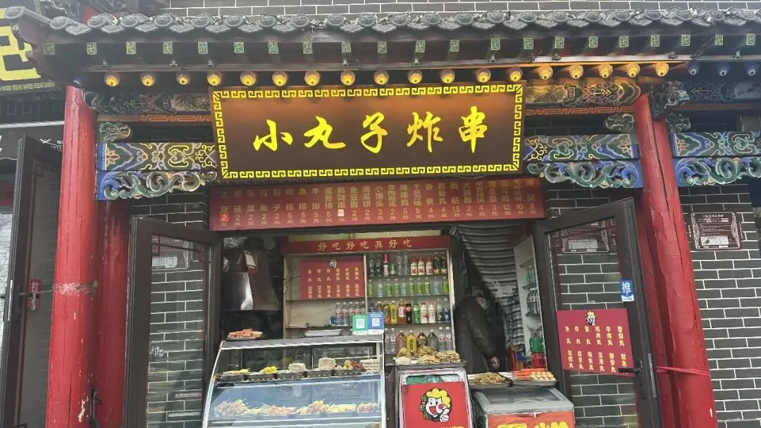 江南炸串位于海子边东街与纯阳宫的交叉口处,简单的街边档口,一串炸得恰到好处的土豆或莲菜,是许多本地人放学、下班路上吃了多年的“小确幸”。