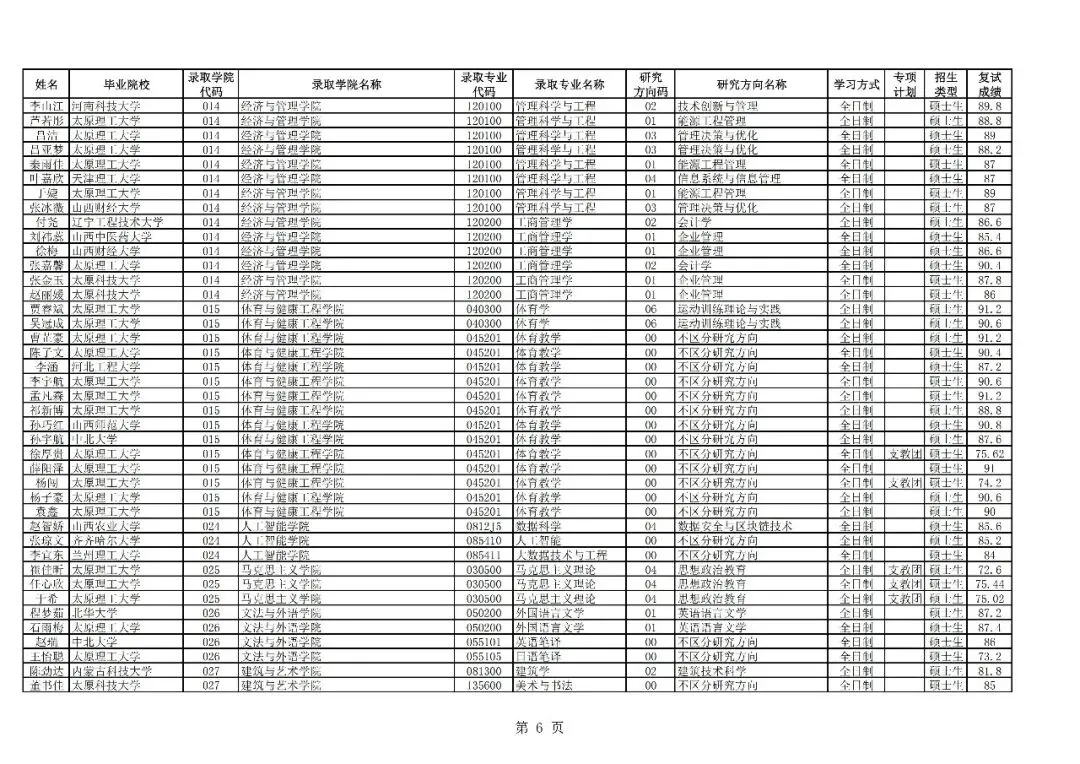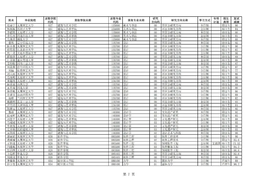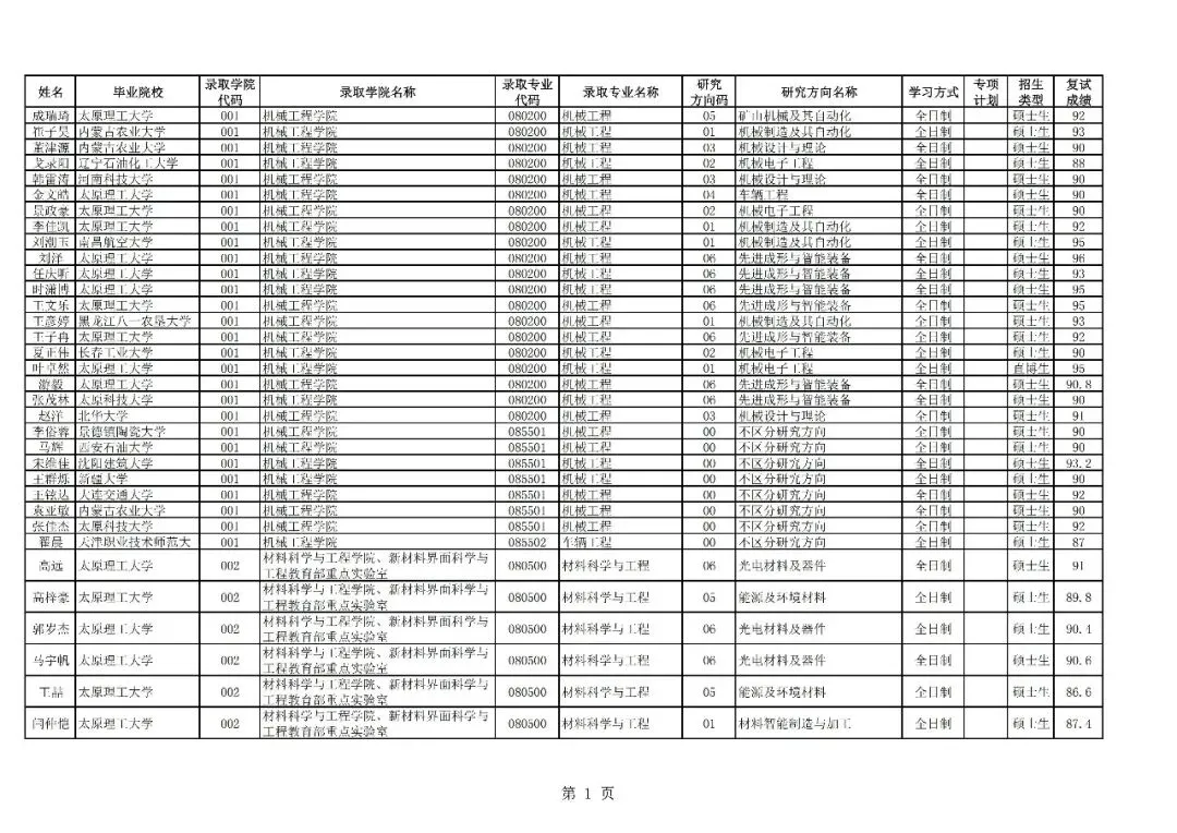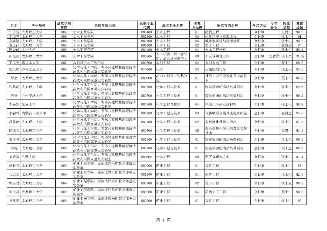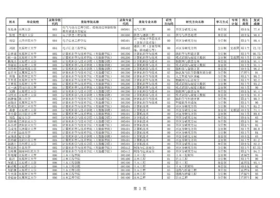 >太原理工大学接收2026届优秀本科毕业生免试攻读研究生(含直博生)拟录取名单