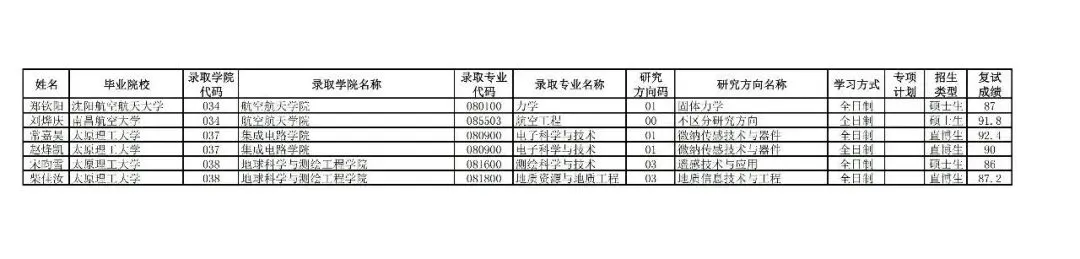 太原理工大学接收2026届优秀本科毕业生免试攻读研究生(含直博生)拟录取名单