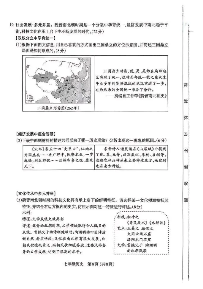 评分说明:概括领域特征得2分,围绕这一特征,举出三个史实并加以说明得6分,共8分。