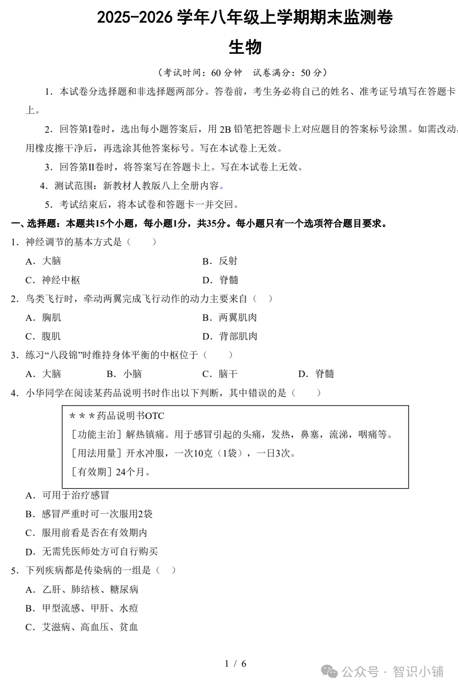 山西省初二2025-2026学年八年级上学期期末学业诊断试卷+答案