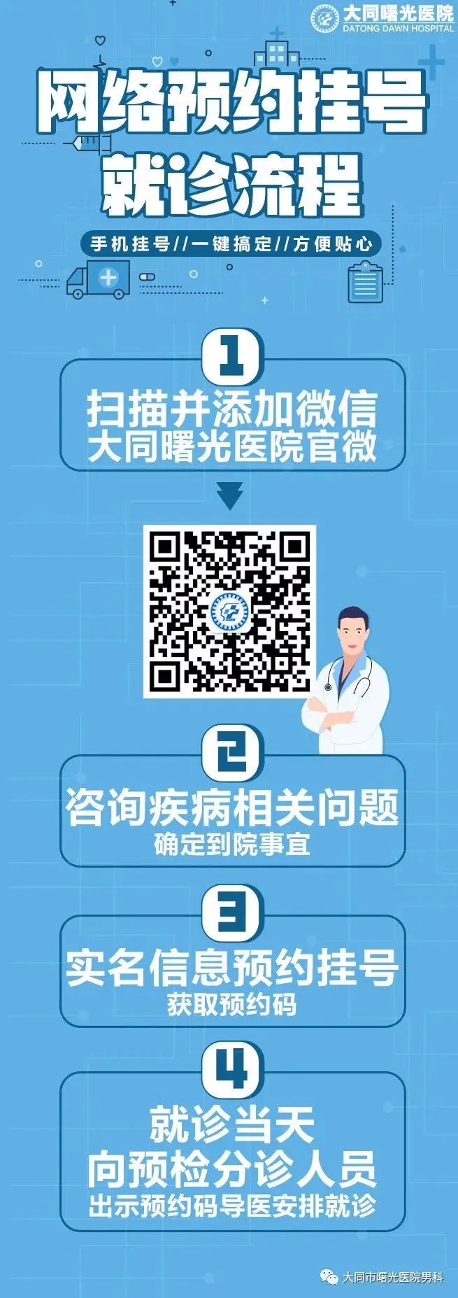 为了方便患者就医,大同曙光男科医院提供了多种预约方式。