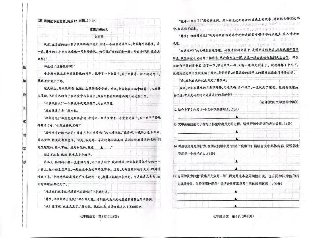 15.月光在寓言中代表着希望与美好,韩生收集月光绝非多此一举,而是一种未雨绸缪的生存智慧与积极的生活态度。生活中的我们同样如此:在顺境中汲取知识、积攒经验、涵养心性,这些都是在储备属于自己的"月光"。当困境或迷茫来临,这些储备能为我们照亮前路,带来走出低谷的勇气与可能。