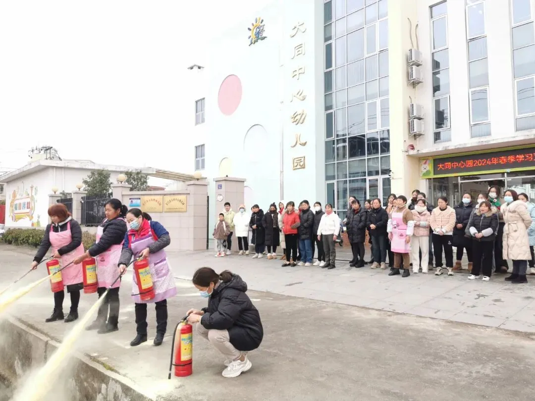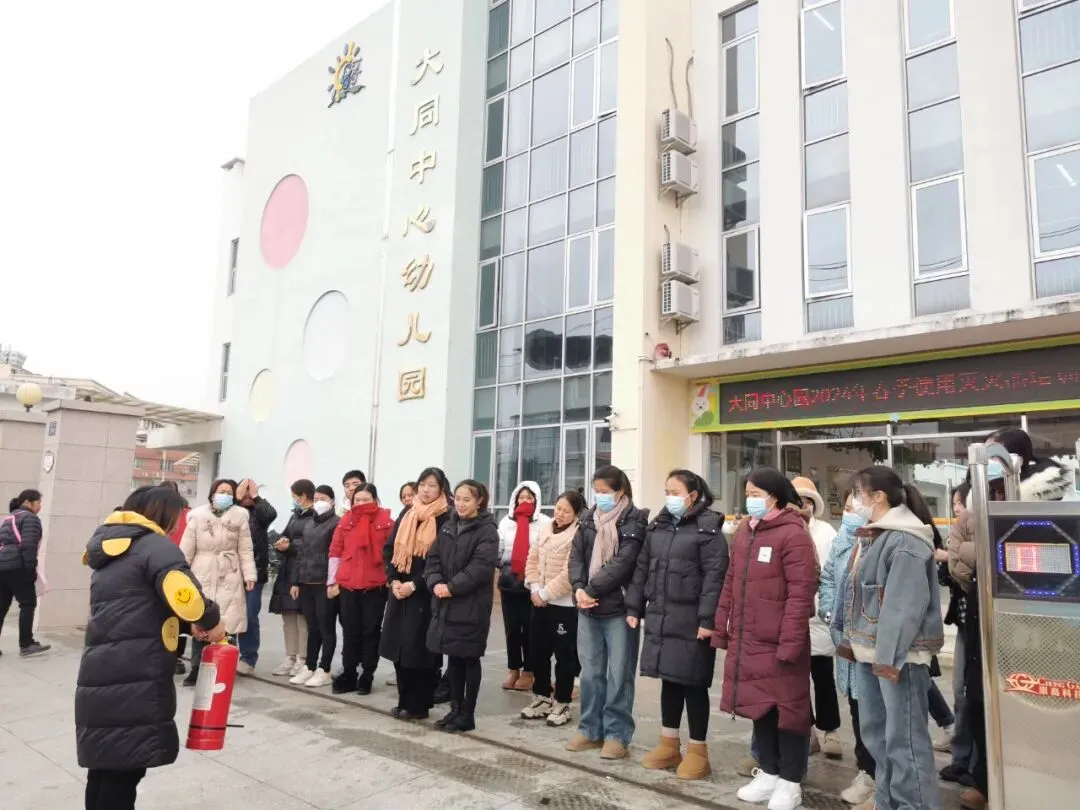 开学初,严经球园长组织全体教职工学习消防安全知识及使用灭火器培训。