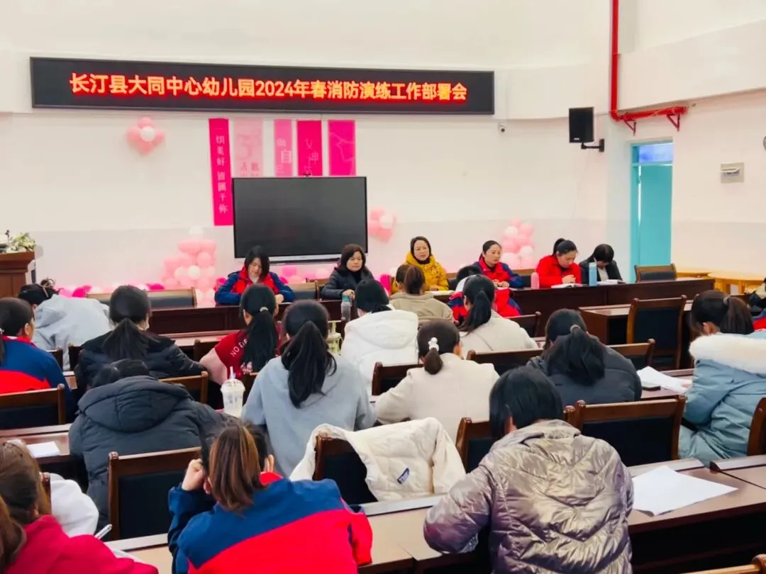 演练前,严经球园长组织召开学校火灾疏散逃生大演练活动工作部署会议,会议中严经球园长强调:每个老师要熟悉演练方案及自己的职责,要教给孩子正确的逃生方法及发生火灾怎么做、物品掉了怎么做、有人摔跤了怎么做等等,尽量做到快速、正确、有序。