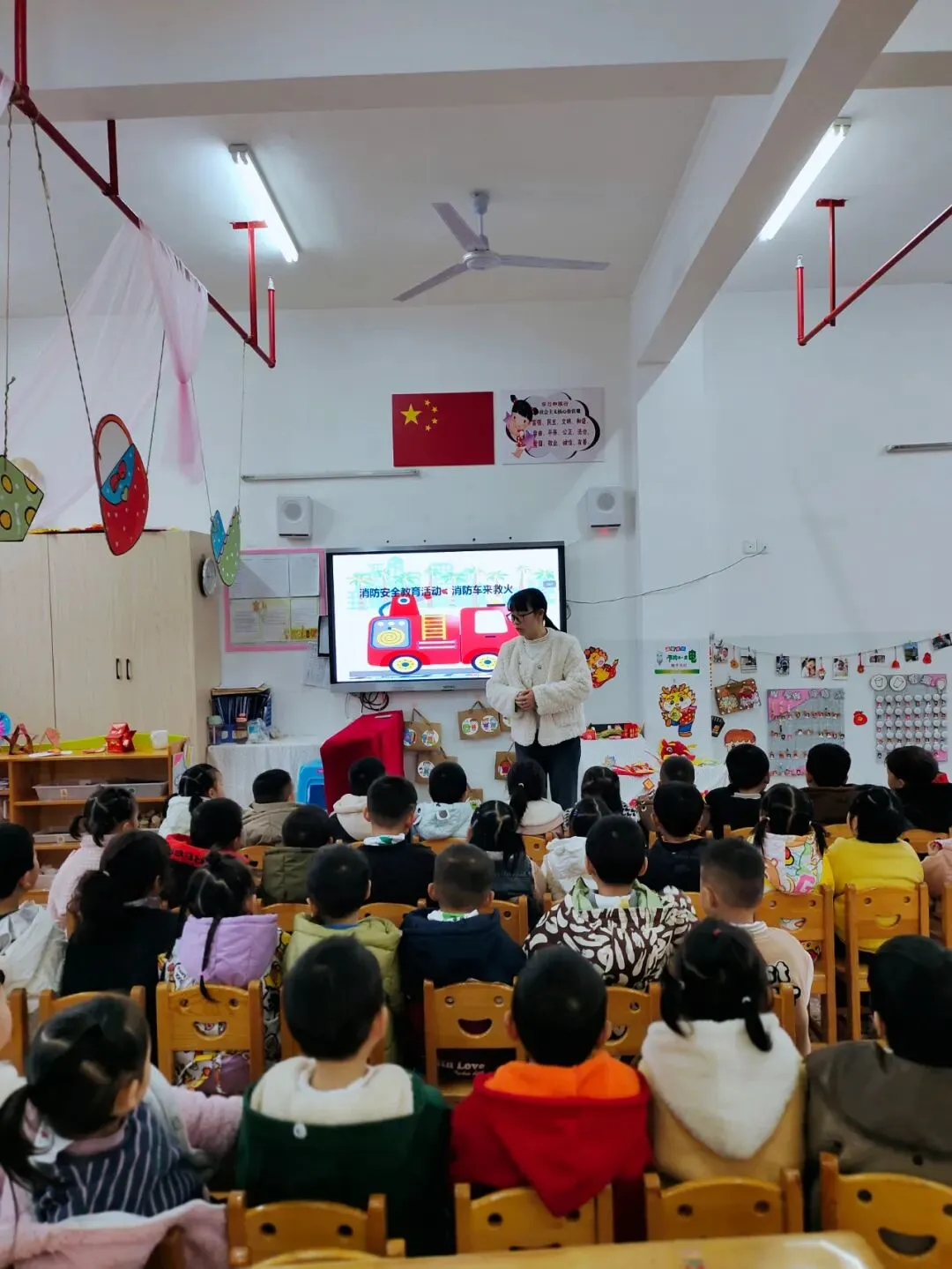 火灾来了怎么办?如何快速有效撤离火场?各班老师根据幼儿年龄特点对幼儿进行了针对性的消防知识宣传。