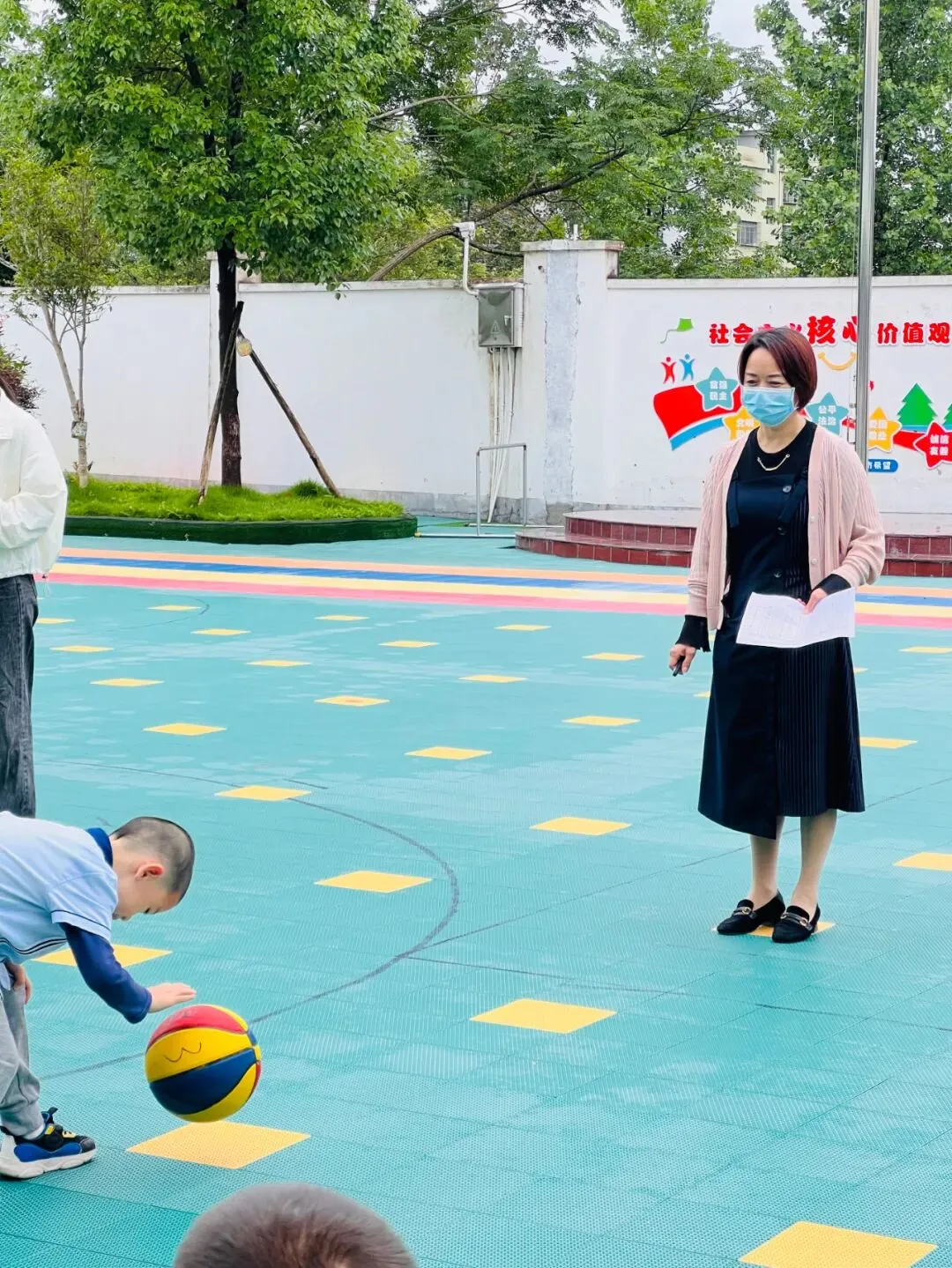 中班年段举行的是“一分钟拍球”比赛。小选手们纷纷拿出了自己的看家本领,专注地拍球。有的孩子一次次捡起球重新拍球,在拍球中他们学会了坚强与坚持,不断地挑战自我,充分发挥自己的潜能,在体验成功的同时让自己变得更强!