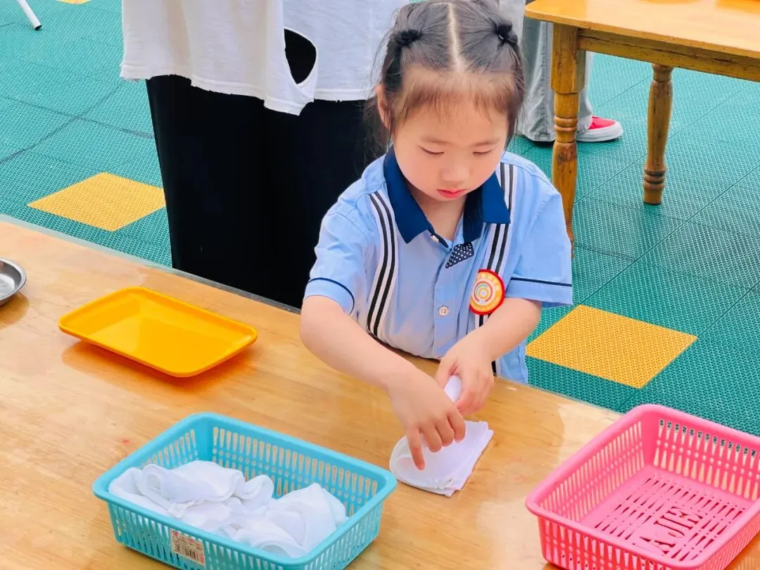 著名教育家陈鹤琴先生提出:“凡是儿童自己能做的,应当让他自己做”。根据小班幼儿的年龄特点,小班年段开展“我是自理小能手”幼儿生活自理能力大赛。通过夹、叠、剥的技能,锻炼小班幼儿大小肌肉的力量,促进身体的协调性和灵活性发展,提高幼儿生活自理能力。