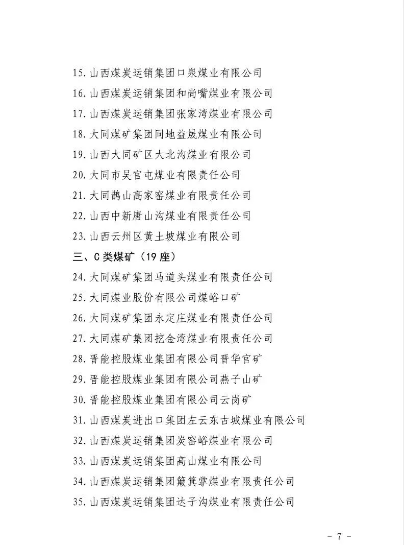 2.大同市煤矿分类名单