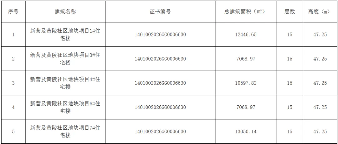 项目名称:新营及黄陵社区地块项目1#住宅楼、3#住宅楼、4#住宅楼、6#住宅楼、7#住宅楼