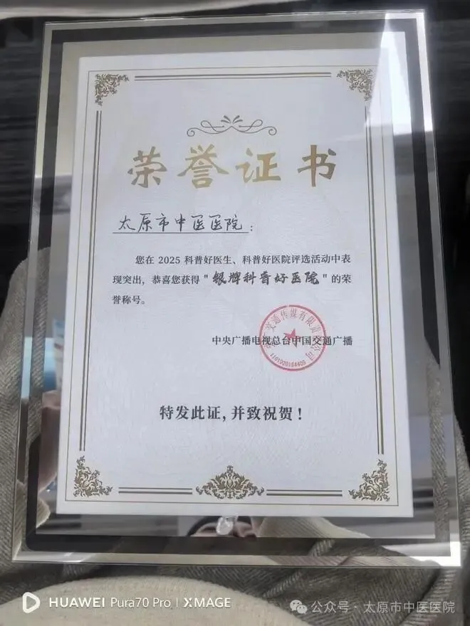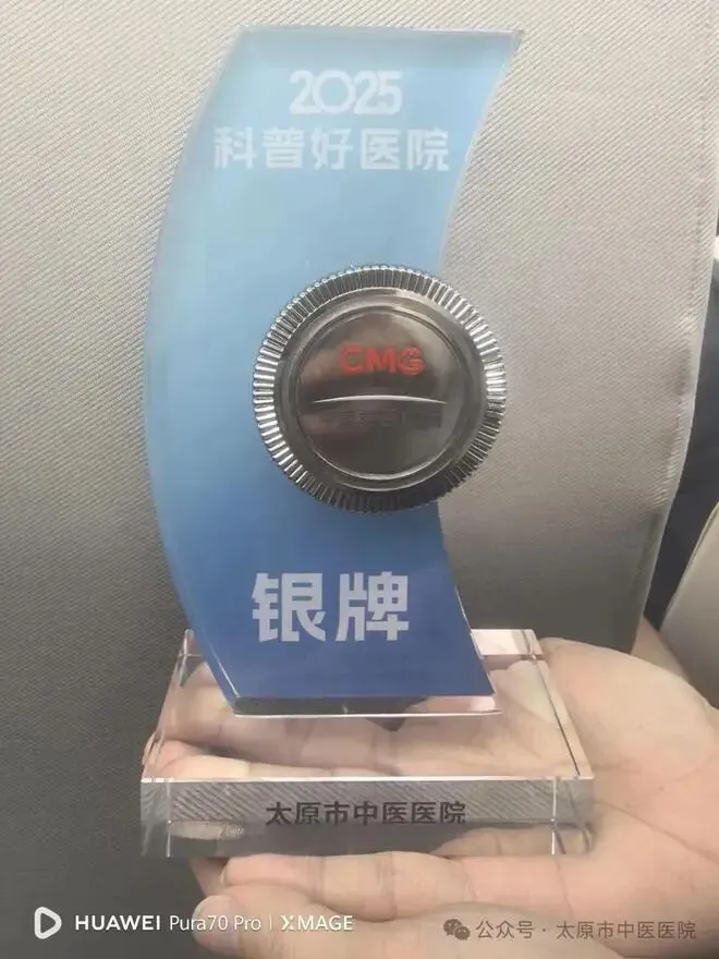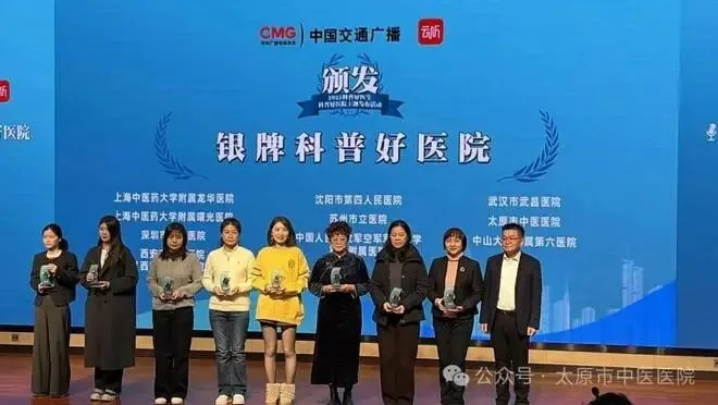 经卫健委推荐,太原市中医医院在中央广播电视总台中国交通广播主办的2025年“科普好医生 科普好医院”评选中脱颖而出,荣获“银牌科普好医院”称号,成功跻身全国20家获评单位行列。