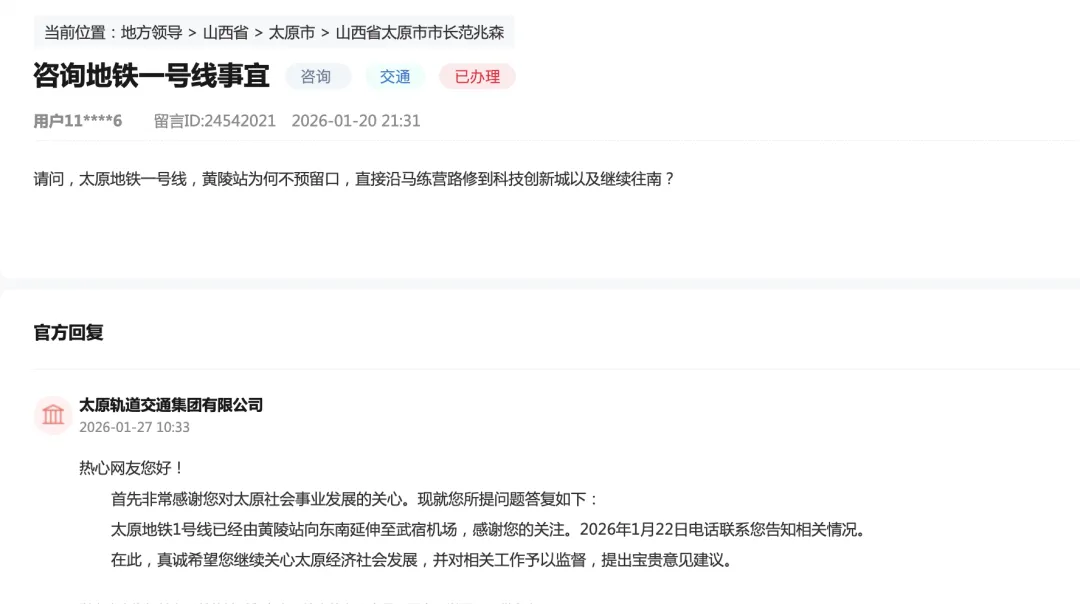 请问,太原地铁一号线,黄陵站为何不预留口,直接沿马练营路修到科技创新城以及继续往南?