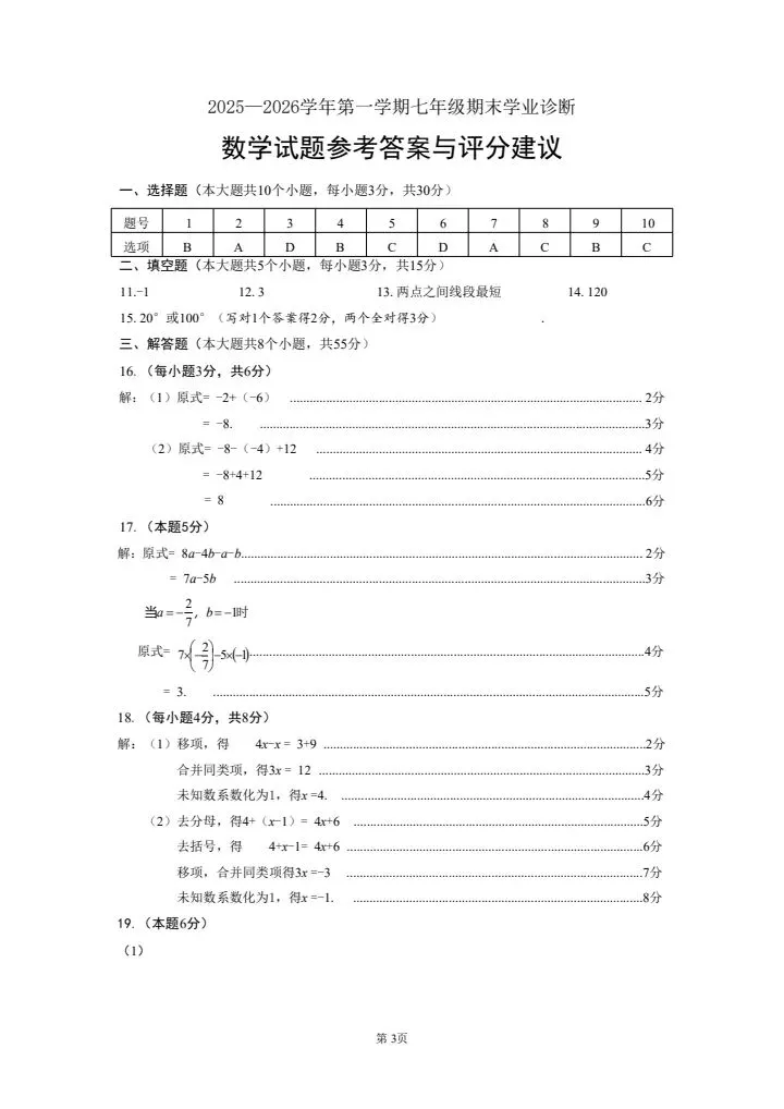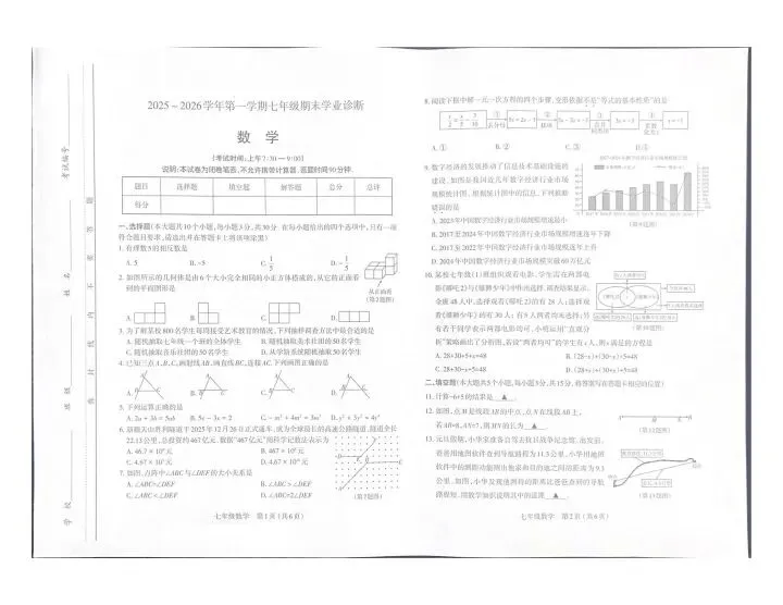 >【山西 太原 】2025-2026学年 第一学期 七年级期末 数学试卷+答案