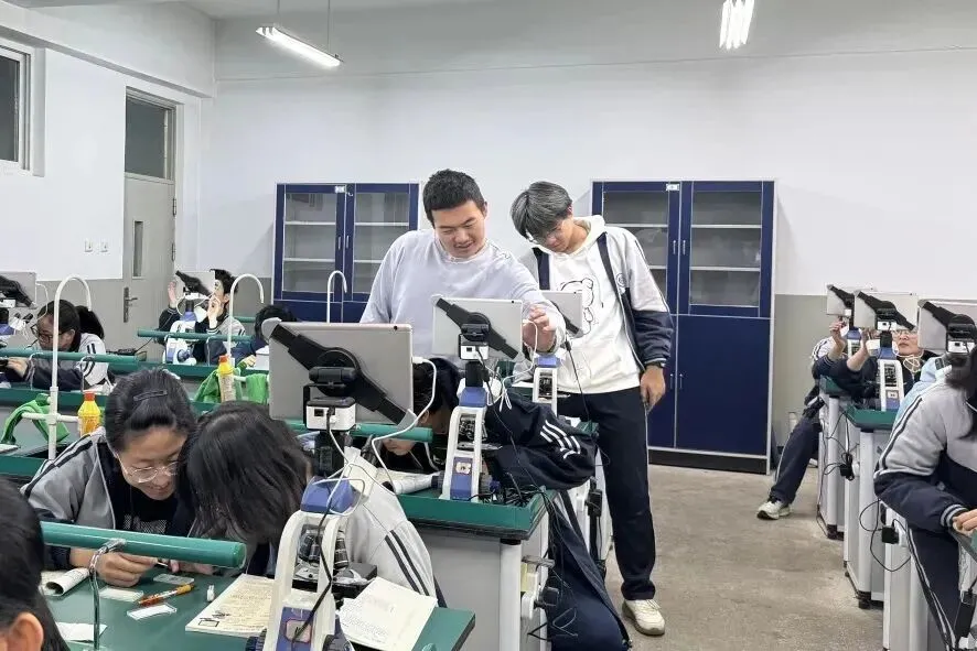 该实验室是学校2019年5月被授予“教育部基础教育课程教材发展中心、课程教材研究所普通高中生物学科山西教研基地实验学校”后,为发挥学校生物学教学示范、引领和辐射作用,适应实验教学信息化、智能化需求,由太原市教育局专项投入建成的。实验室启用后,极大地激发了同学们探索微观生物世界的兴趣。