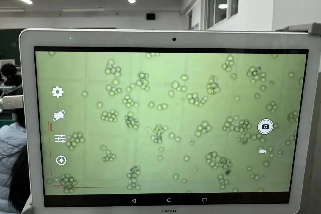 显微镜下的酵母菌是什么样啊?看看同学们课堂观察的热烈场景: