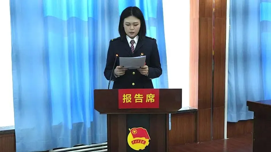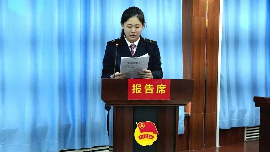 段团委书记刘一妙作题为《高举旗帜跟党走 青春建功新时代 团结带领团员青年为大同房建公寓段高质量发展贡献青春力量》的工作报告。