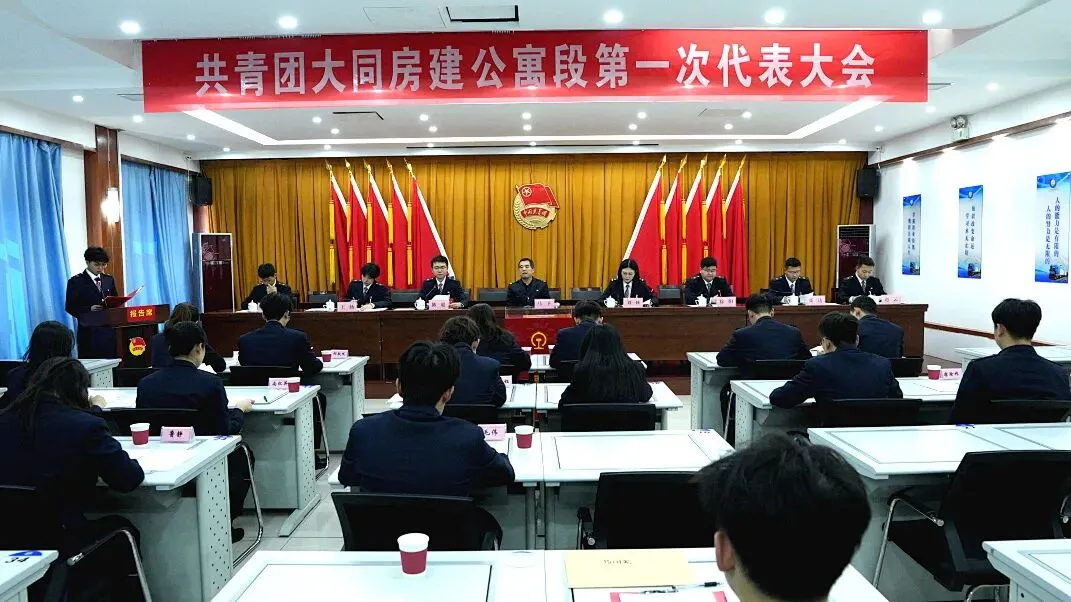 2026年1月28日,共青团大秦铁路股份有限公司大同房建公寓段第一次代表大会隆重召开。集团公司团委副书记李浩、段党委书记马卫、工会主席白世峰、副段长刘增军出席会议,全段22名团代表齐聚一堂,总结过往工作、谋划未来发展。会议在雄壮的国歌声中拉开帷幕。
