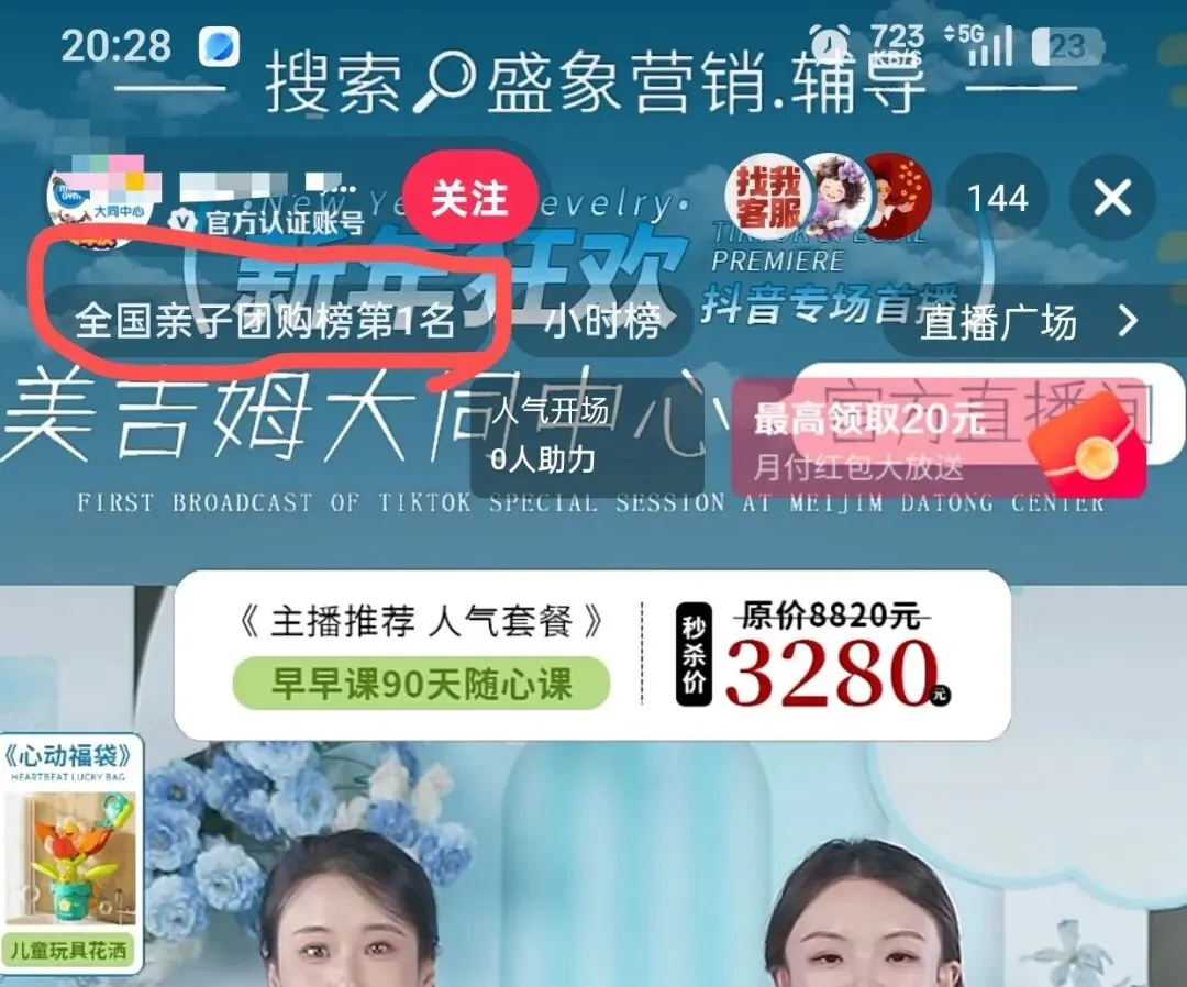 成功的本地直播始于精准铺垫,占位卡爆卖为专场直播筑牢根基。盛象团队深谙大同本地家长对优质早教资源的需求,设计高性价比占位卡,以“锁定同城专属权益”话术击中决策痛点。通过同城短视频预热种草、社群裂变传播、老客带新激励等零投流方式,精准触达周边3公里意向客群,最终881人抢购占位卡,既锁定核心客户,又为直播积累充足人气。