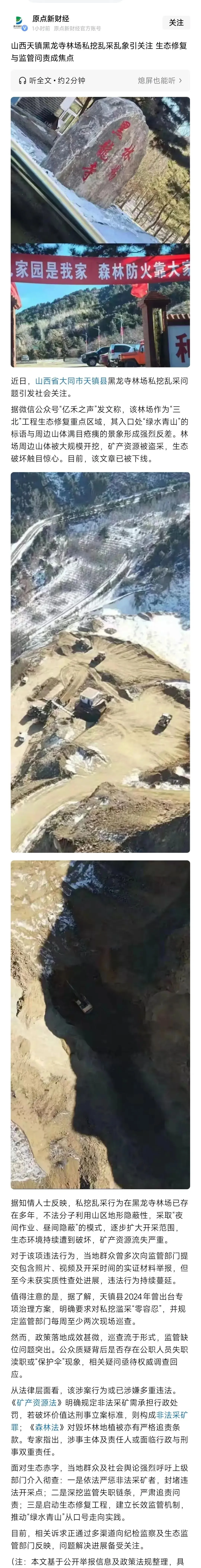 媒体曝光山西省大同市天镇县张西河乡黑龙寺私挖乱采