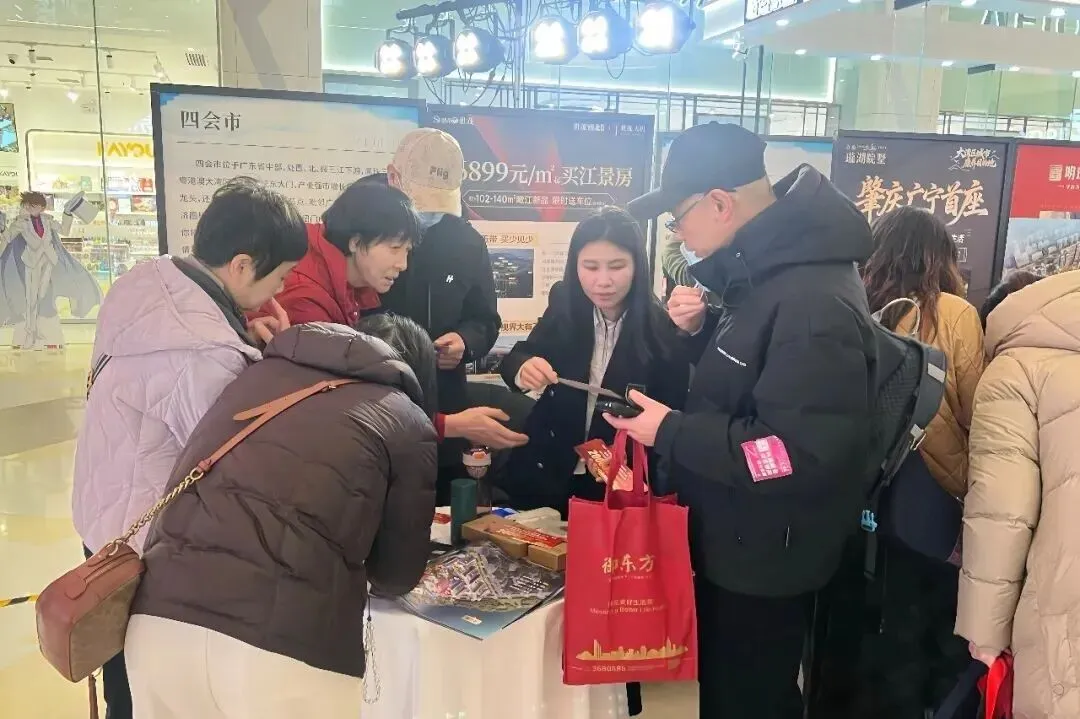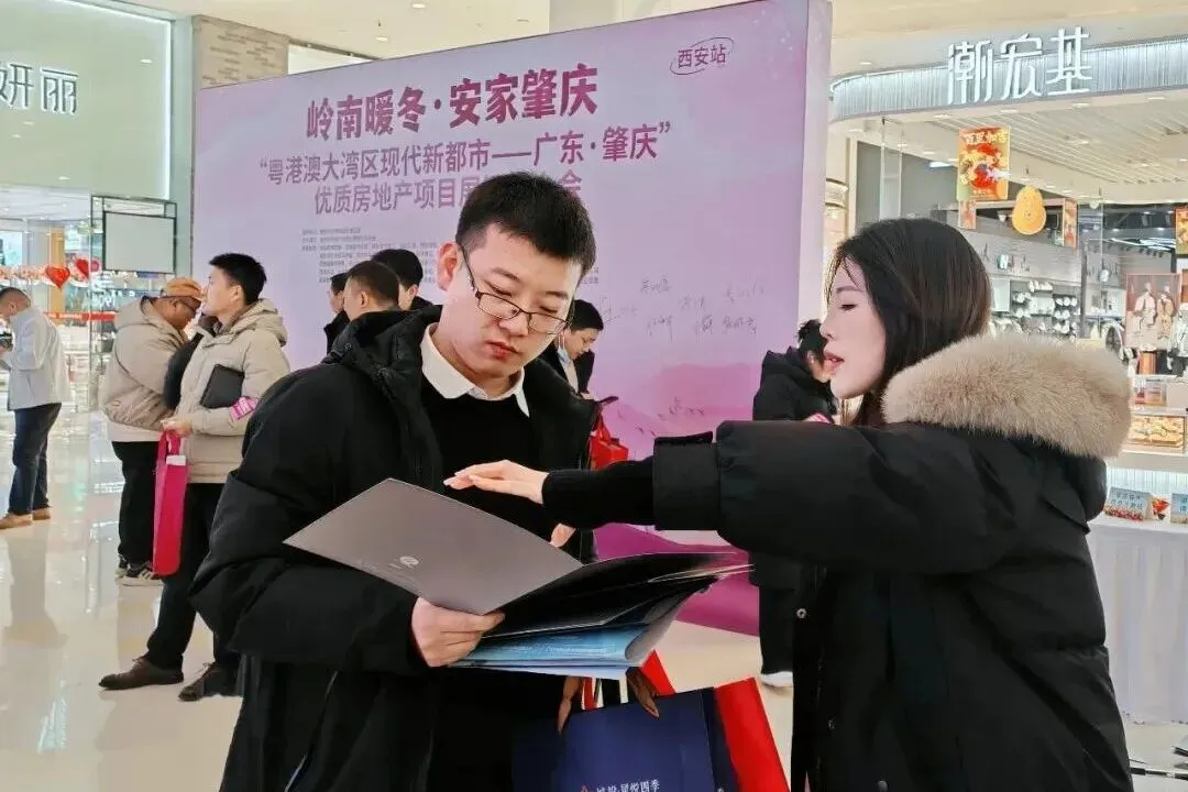 活动采用线上线下立体联动的传播模式。线下,精心打造的沉浸式展销空间,综合运用高清视频、实景展板、宣传资料等多元载体,从自然生态、历史人文、交通区位到产业发展等多个维度,全景呈现肇庆的城市魅力。各参展企业为到场市民提供从项目解读、跨城政策答疑到贷款咨询的“一站式”服务。肇庆市文广旅体局在现场设立专题展位,生动推介特色文旅资源,让晋陕宁三地市民近距离领略“岭南名郡”的独特风情。线上,则联动两地主流媒体预热,邀请网红达人实地打卡,并通过户外地标大屏联播、多平台直播导览等方式,全方位讲述肇庆故事,有效提升了城市品牌吸引力与楼盘关注度。