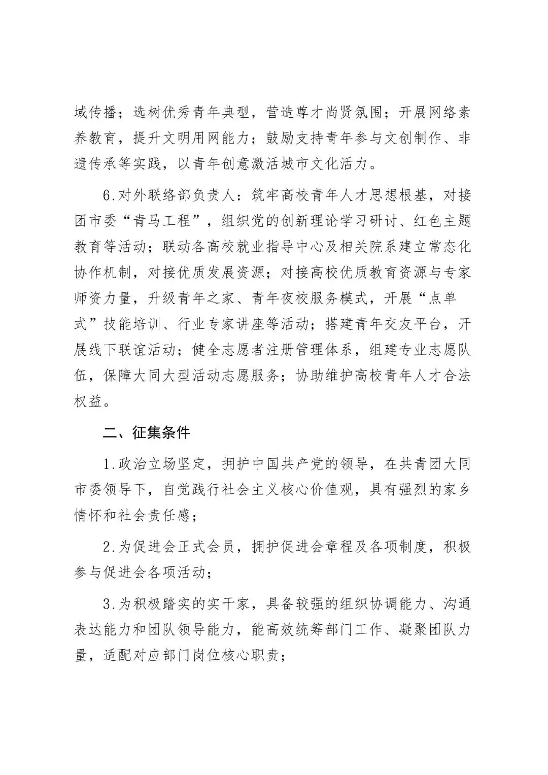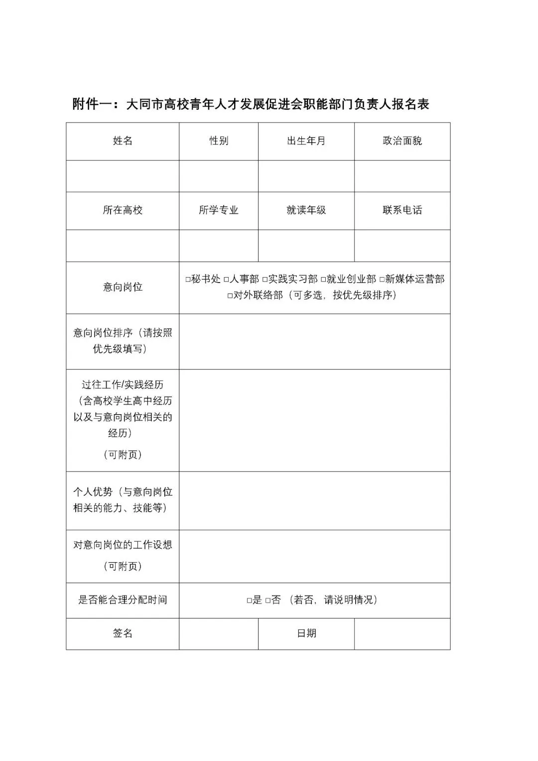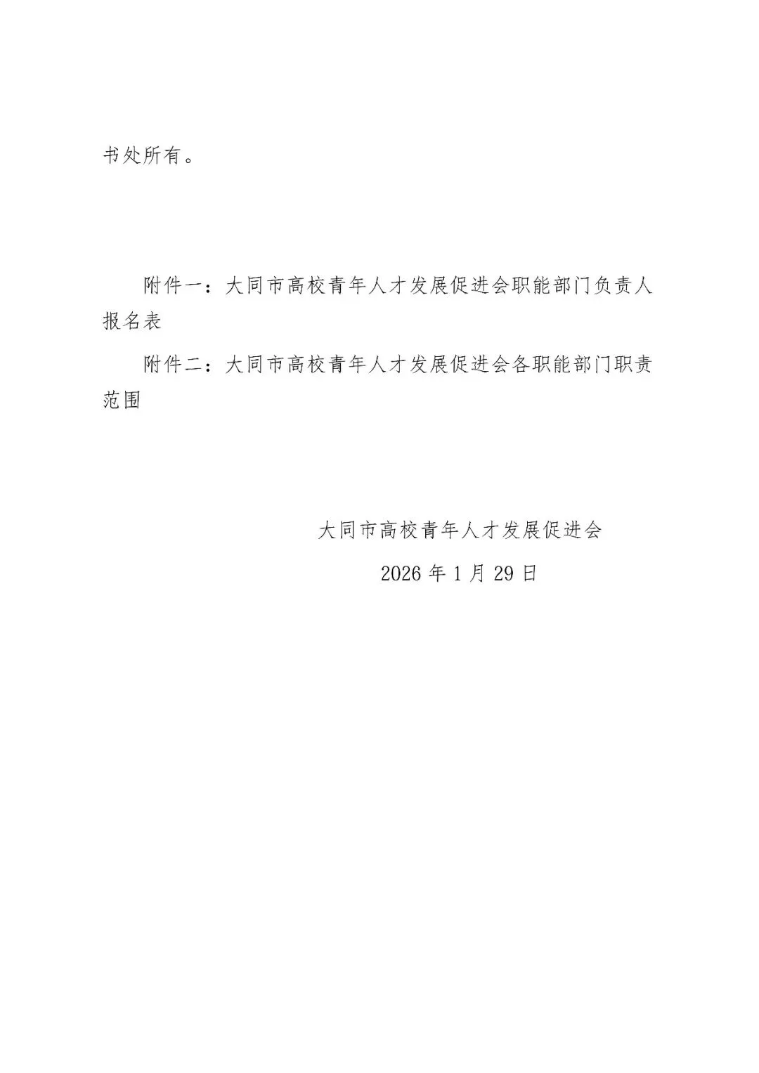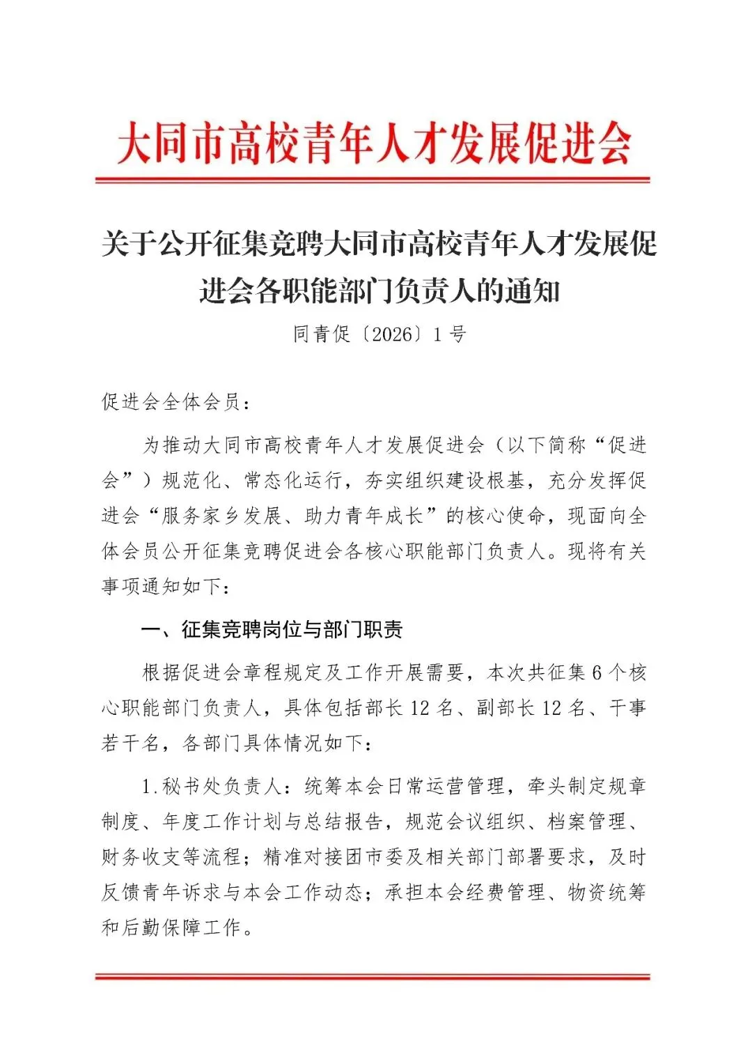 >关于公开征集竞聘大同市高校青年人才发展促进会各职能部门负责人的通知