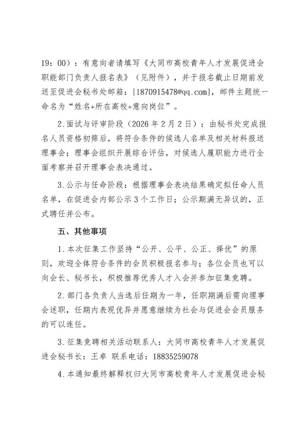 关于公开征集竞聘大同市高校青年人才发展促进会各职能部门负责人的通知