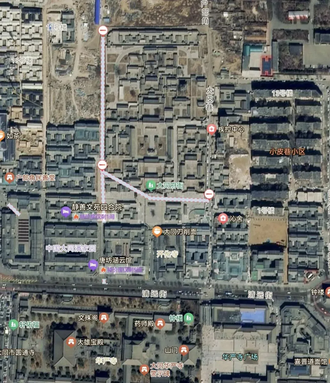 华严寺始建于辽清宁八年,千年位置未变,该图绘制时期尚未分出上、下华严寺,今为国保建筑,著名景点。