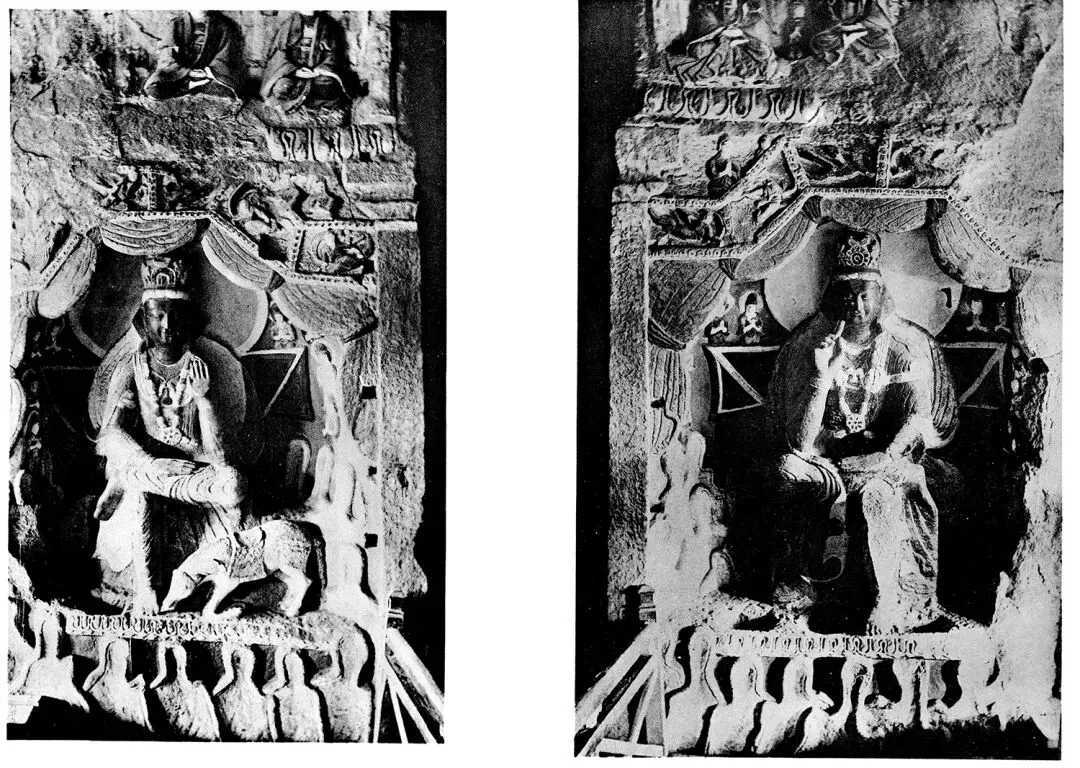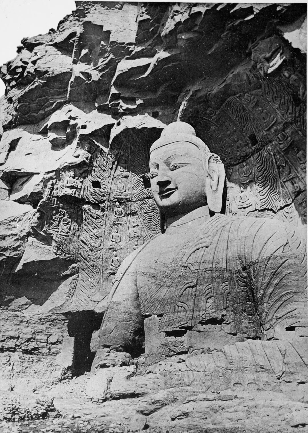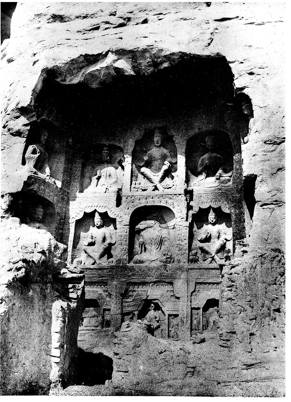 在沙畹的影像里,云冈石窟“九宫格”很完整。后来的三尊佛像被盗,不知去向,这也成了我们永远的痛,如今只能从照片里窥见它们曾经的模样。