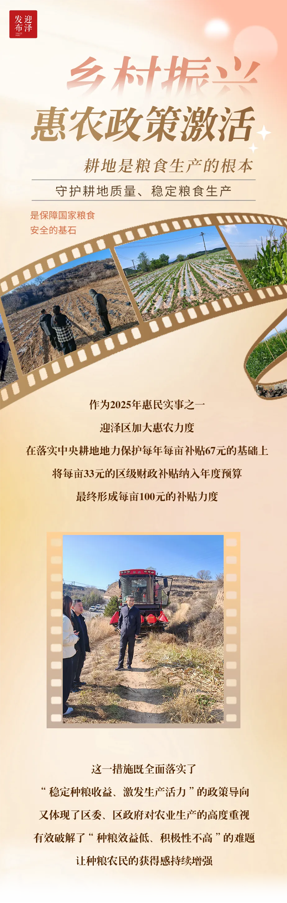 作为保障耕地质量、稳定粮食播种面积的重要民生工程,耕地地力保护补贴政策的实施,直接关系到农民的切身利益和农业生产的积极性。为全面贯彻落实《国务院办公厅关于切实加强耕地保护提升耕地质量的意见》《山西省耕地地力保护补贴实施方案》等政策要求,迎泽区紧密结合区域农业发展实际,印发《关于做好迎泽区2025年耕地地力保护补贴资金发放工作的通知》,通过全流程精准管控、多维度宣传引导,让补贴资金精准直达种粮农户手中。