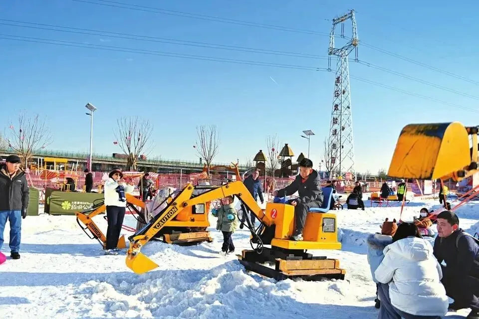 太原康培稻田公园内,市民畅玩冰雪项目,在欢声笑语中尽享冬日文旅盛宴。