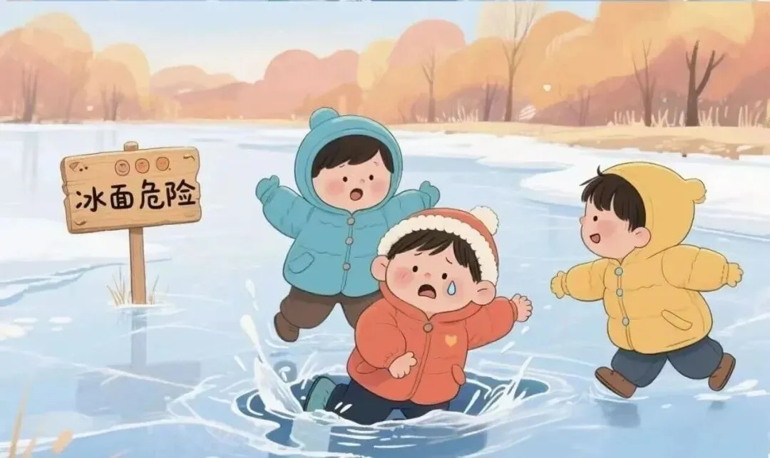 1.冬季气温较低,河湖沟渠易结冰,严禁到冰面、水库、池塘等危险区域玩耍、滑冰,谨防溺水事故。