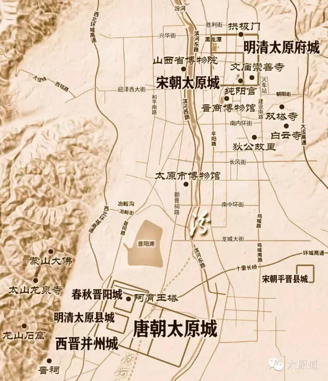 唐代河东节度使驻节太原。最早的太原城由春秋时期晋国正卿赵简子创建,位置在今太原市晋源区古城营村一带,因地处晋水北侧,取名晋阳。晋阳城自创建之始就注定将成为权谋和中枢和战争的策源地,赵国初都、两汉重镇、西晋强藩、北魏霸府、高齐陪都的辉煌历史清晰的印证了这一点。隋朝末年,李渊、李世民父王起兵太原,一手掀开了大唐盛世的帷幕。太原做为李氏家族的龙兴之地和第二故乡,被奉为“王业所基,国之根本”。武则天登基第二年,太原成为北都,后来又改称北京,政治地位仅次于长安、洛阳,李白诗句中的“天王三京,北都居一”即由此而来。晋阳城在唐代被扩建为横跨汾河两岸、拥有“里三城、外三城”的古代超级城市集群,固若金汤的城池、严密完善的防御设施使其成为一座坚不可摧的军事重镇,也为这座城市在此后的乱世之中一次次逆天改命赢得龙城之名奠定了基础,进而埋下了被火烧水灌、封印地下的伏笔。