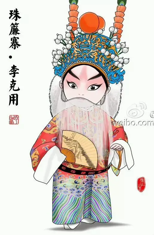 █ 京剧《珠帘寨》中的李克用剧照及Q版绘像,转自的灰微博