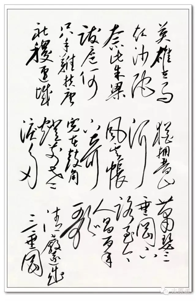 █ 张弼元手书《三垂冈》:“英雄立马起沙陀,奈此朱染跋扈河。只手难抉唐社稷,连城犹拥晋山河。风云帐下奇儿在,鼓角灯前老泪多。萧瑟三垂冈下路,至今人唱百年歌。”此诗作者为清代严遂成,描写的正是李克用父子的故事,毛泽东看到这首诗后,还曾让他的秘书田家英查找此诗的作者