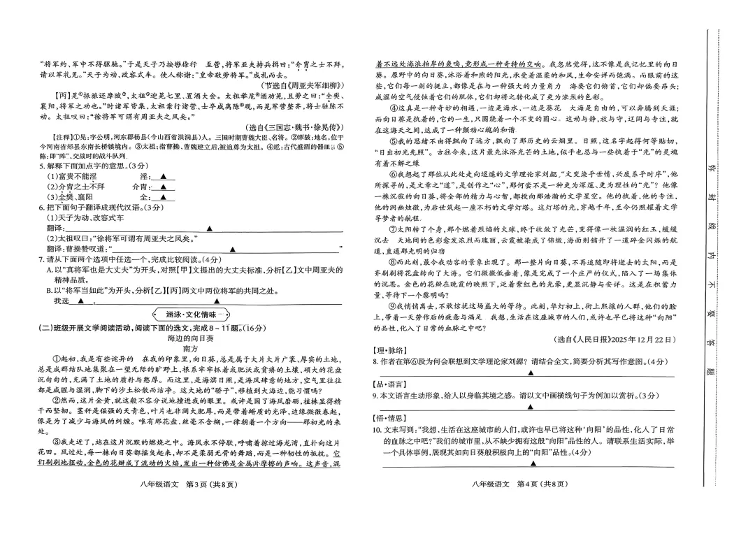 8科全 | 太原2025—2026学年第一学期七年级期末学业诊断卷