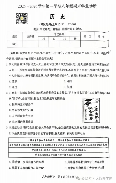 初二历史试题