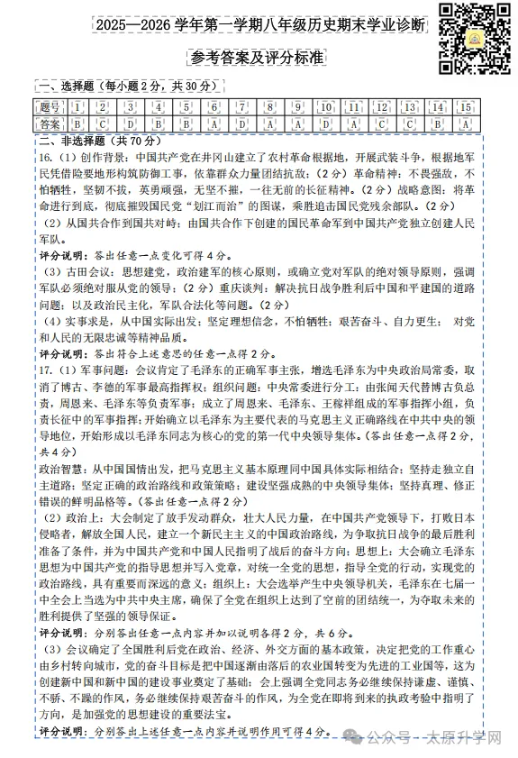 初二历史答案