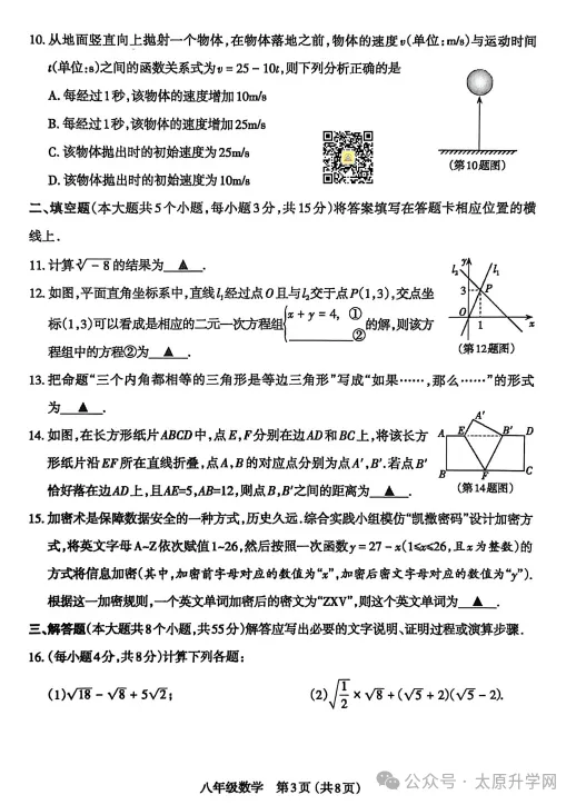 初二期末数学试题