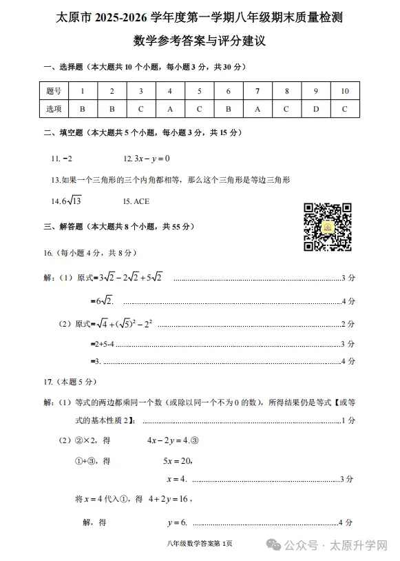 初二期末数学答案